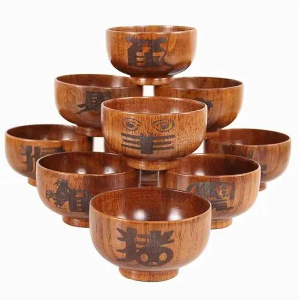 Ensemble de bols en bois de manguier nervuré, forme poire, empilables, finition blanchie, pour la préparation de repas sains et le rangement sur la table à manger