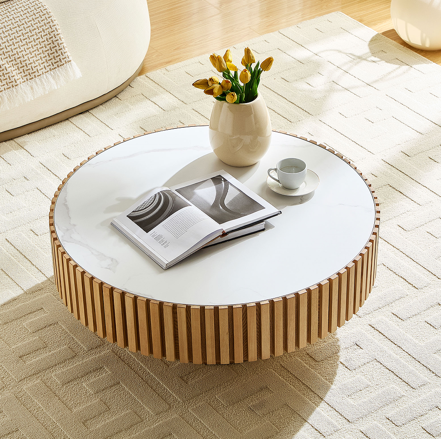Nesting Round Sintered Stone Top Modern Eco-Friendly Durable Coffee Table with Wood Frame for Apartment Living Room Furniture