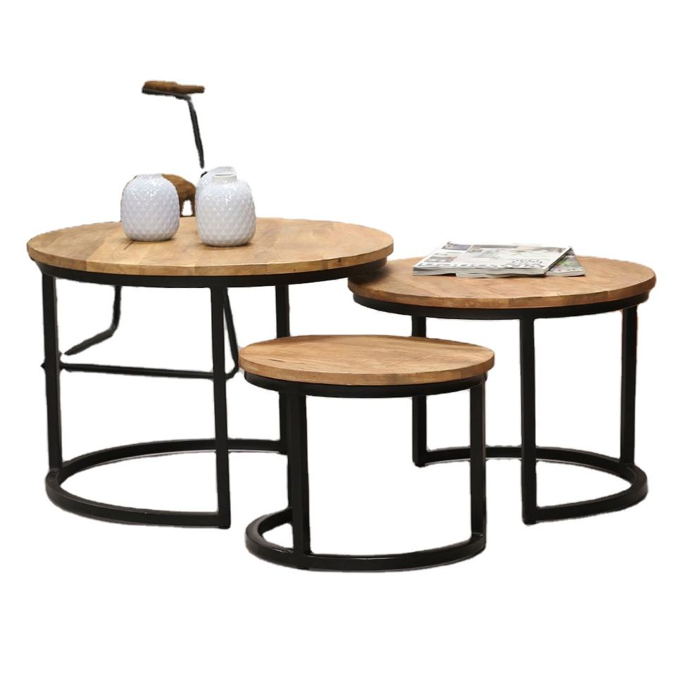 Ensemble de 3 tables basses en bois massif, design moderne et luxueux pour le salon, les hôtels et les restaurants