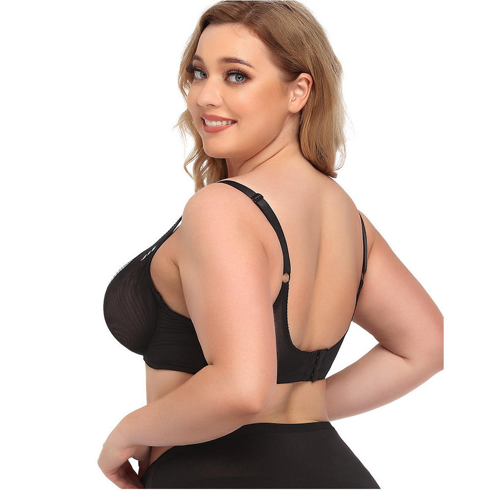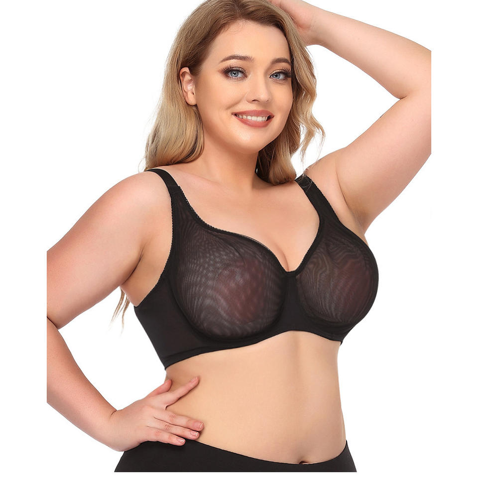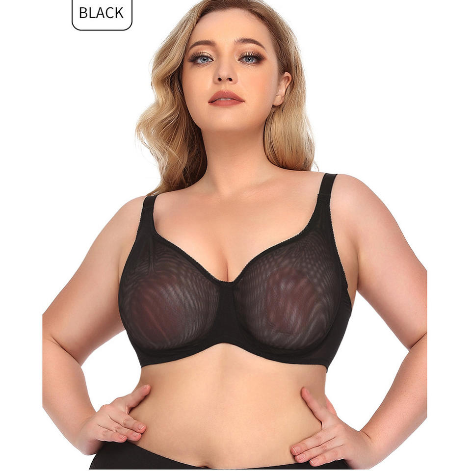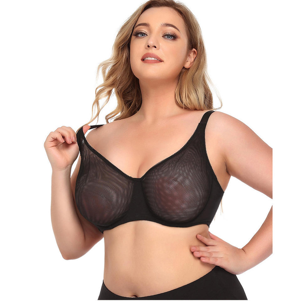 Soutien-gorge double couche en tissu filet noir grande taille avec bonnets moulés, soutien et effet liftant anti-affaissement, lingerie féminine