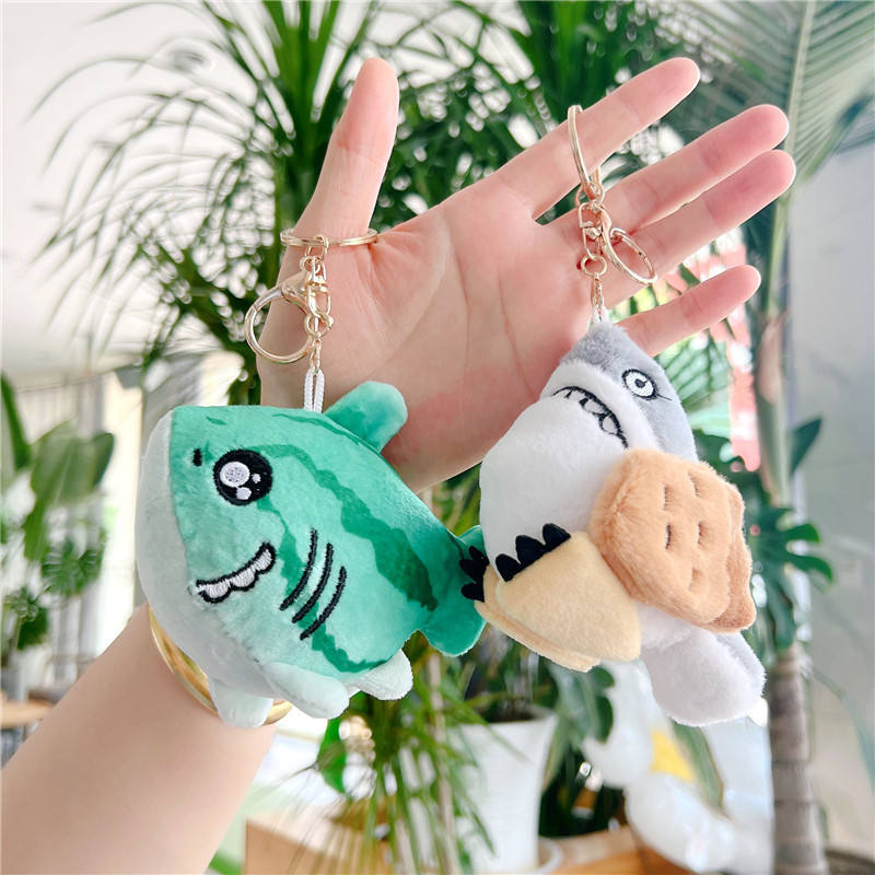 Peluche requin sculptée dans le sable avec fourchette, pendentif petit requin, jouet en peluche en gros, tendance sur les réseaux sociaux