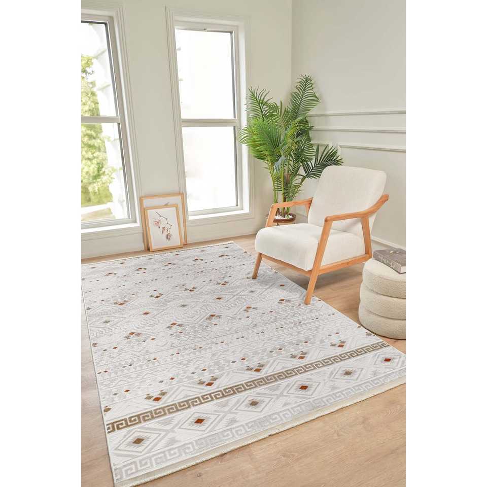 Tapis d'intérieur Netline BE001, crème, moderne, Bereket, 100% acrylique, anti-peluches, facile à nettoyer, durable, 80x150cm, kg, pour chambre à coucher, bureau, Home Depot