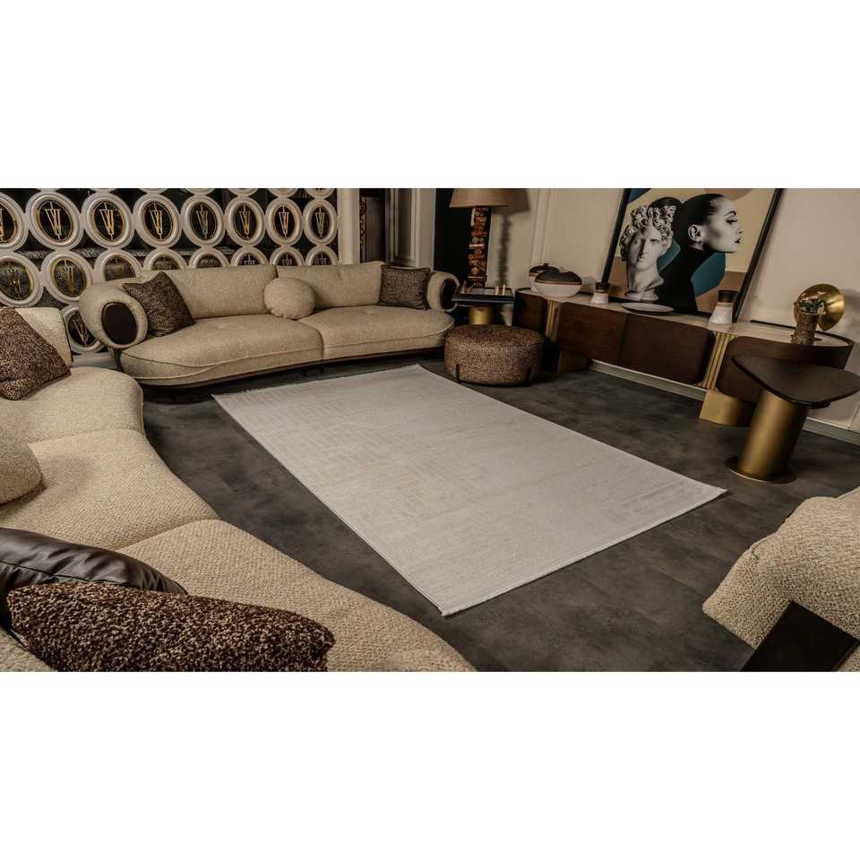 Tapis moderne beige Netline CN014, 100 % acrylique, anti-peluches, facile à nettoyer, durable pour chambre à coucher, bureau, enfants - Home Depot