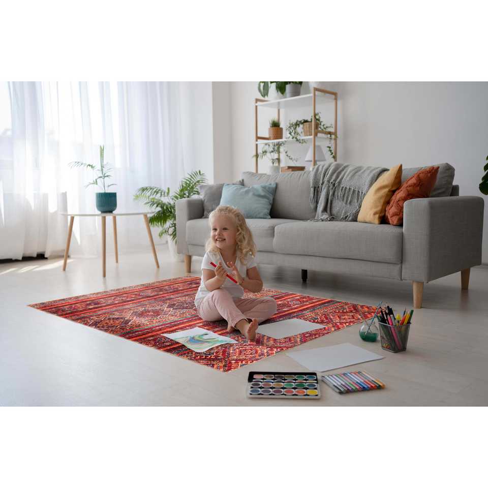 Netline Home Depot NL1007 Kilim-Inspired Multicolor Striped Tribal Diamond Area Rug Machine Washable Carpet for Living Room