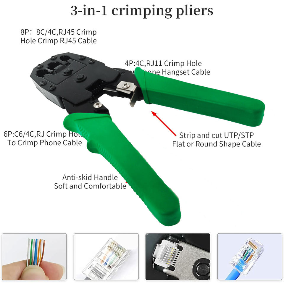 Kit d'outils manuels industriels de qualité OEM pour câbles réseau : testeur LAN, coupe-câbles, tournevis, pince à sertir RJ45, outils métriques