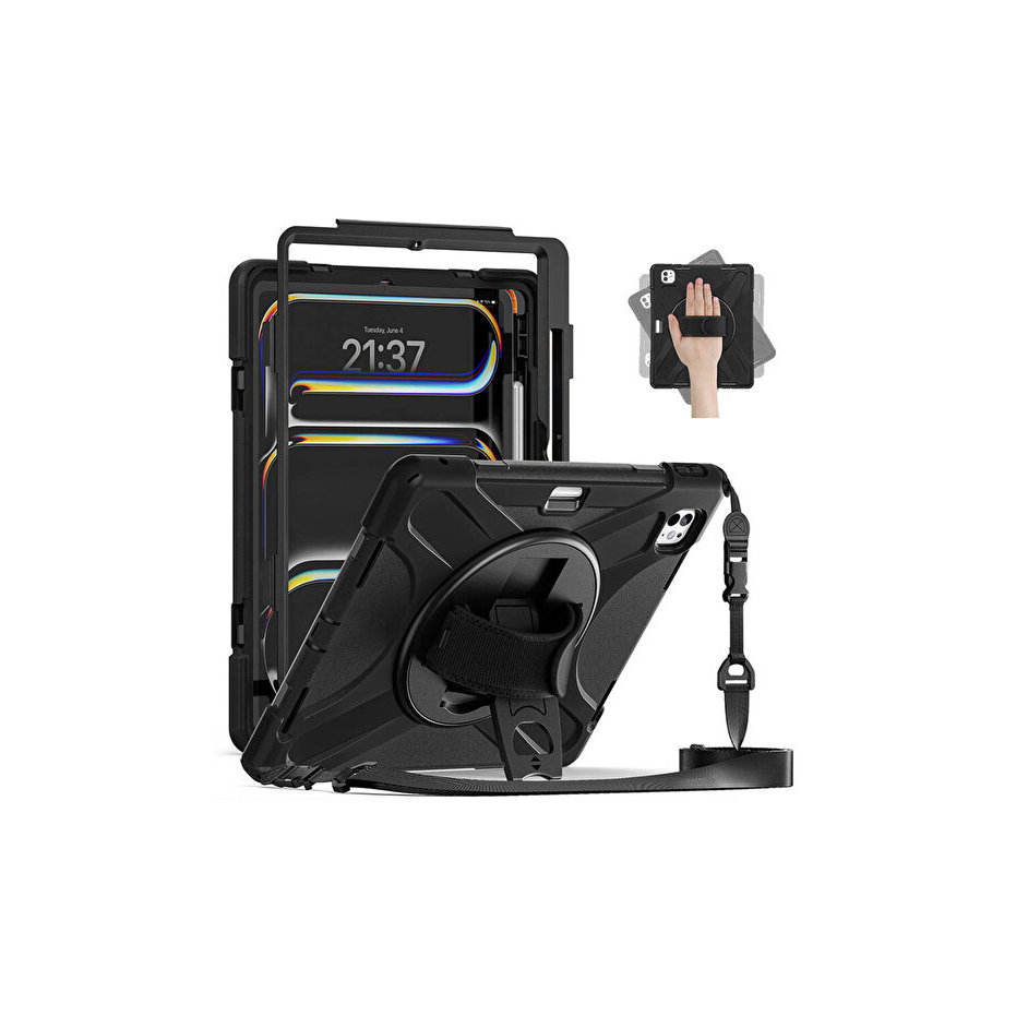 Étui de protection Netzy 2024 Defender pour iPad Pro 13, housse de tablette en silicone noir avec matériaux en TPU, PC, cuir et plastique, 11 pouces