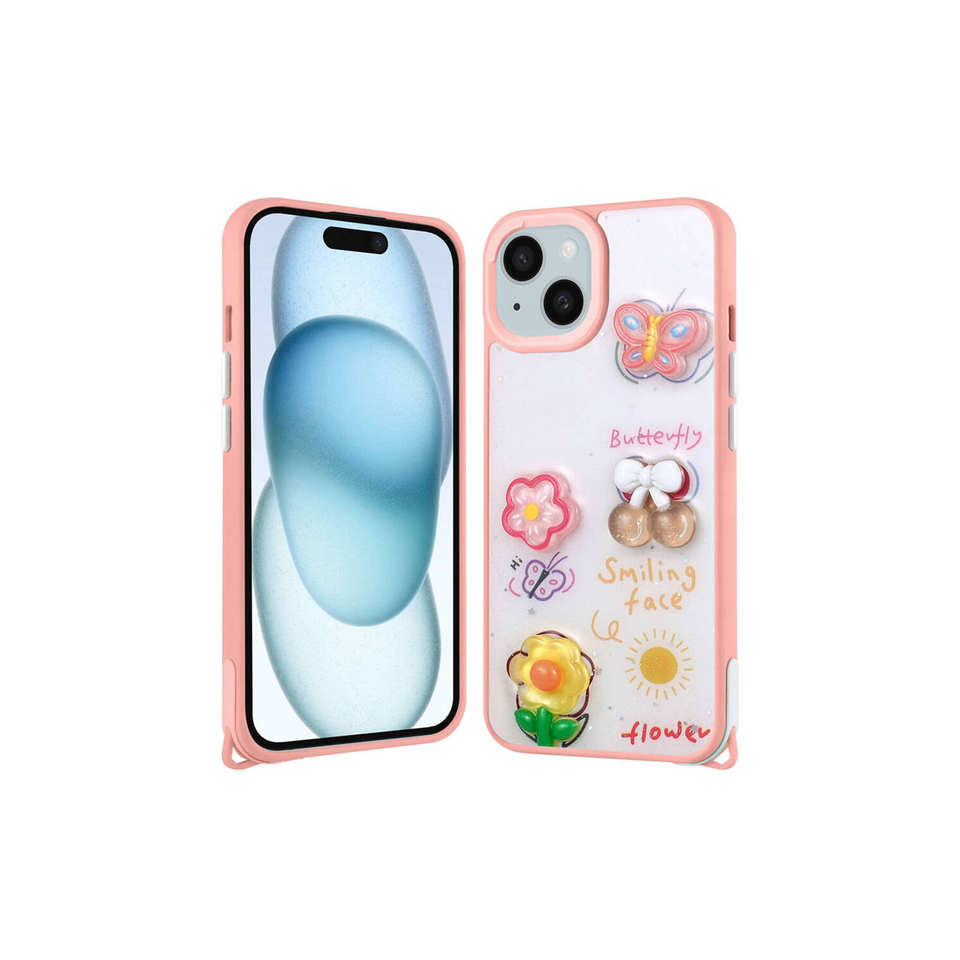 Sable pailleté liquide avec figurine de protection en relief pour iPhone 15 PlusSpécification