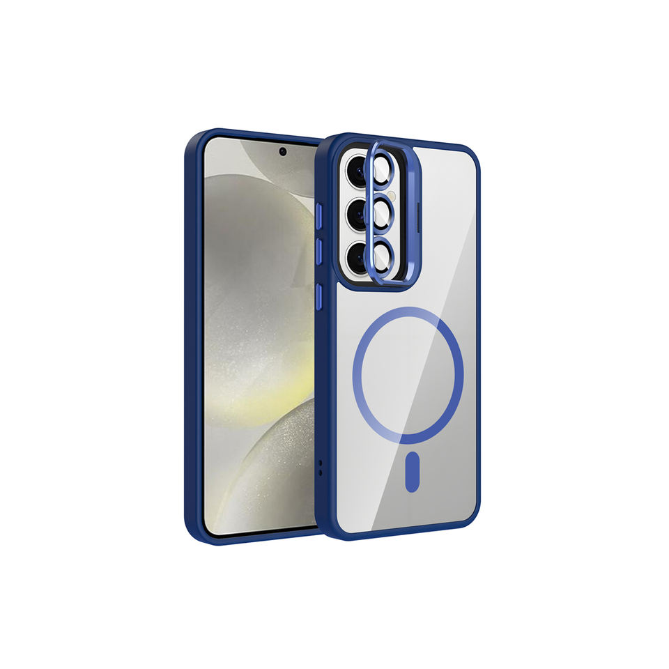 Étui magnétique Netzy M-Safe bleu marine avec béquille pour Samsung Galaxy A53 et 14 Plus, en silicone souple avec protection d'objectif d'appareil photo