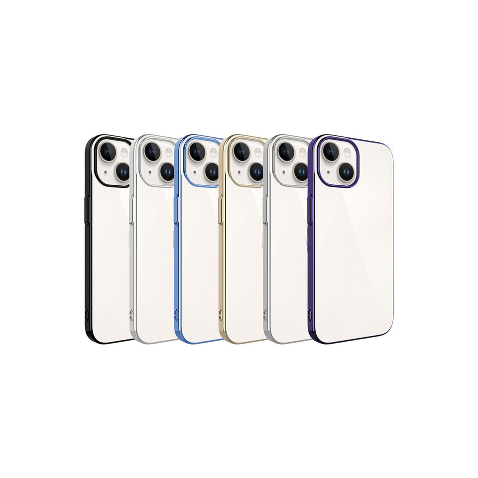 Coque arrière de protection Netzy Premium pour iPhone 15, étui rigide en PC avec cadre coloré, modèle élégant 'Plus'