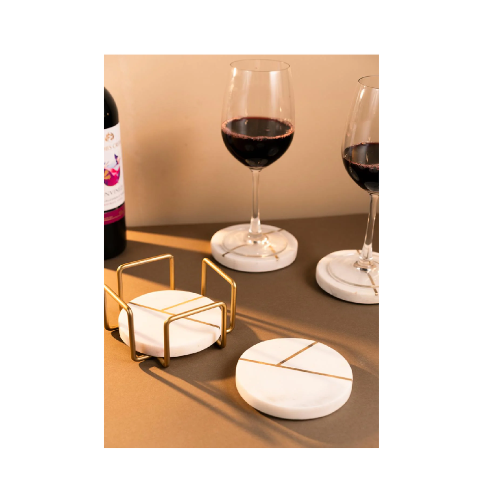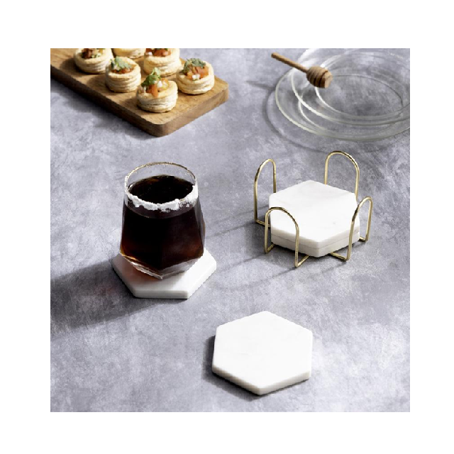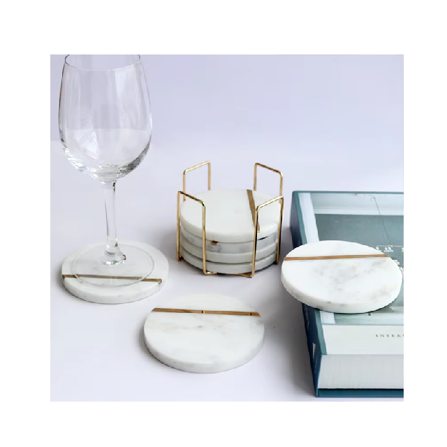 Sous-verres blancs neutres avec support en laiton doré Sous-verres en pierre de marbre Sous-verres en pierre naturelle véritable pour boissons