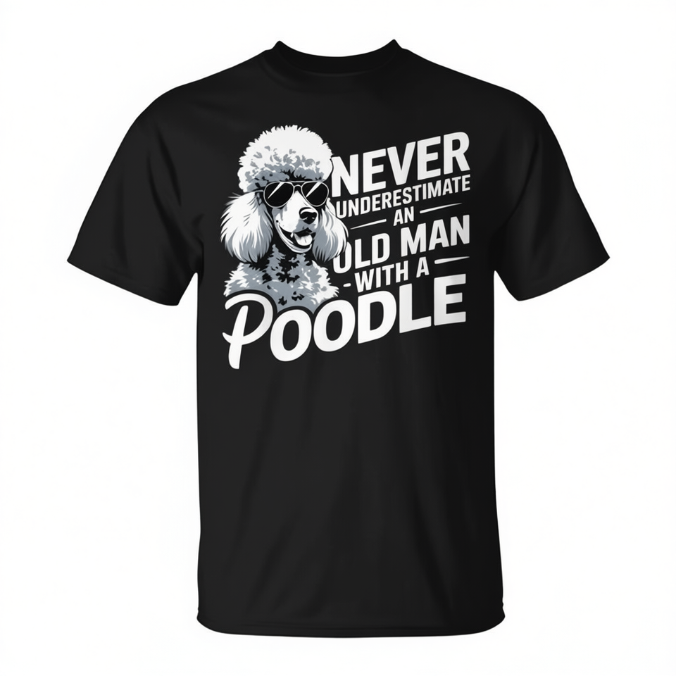 Ne sous-estimez jamais un vieil homme avec un t-shirt Poodle, chemise décontractée noire pour hommes