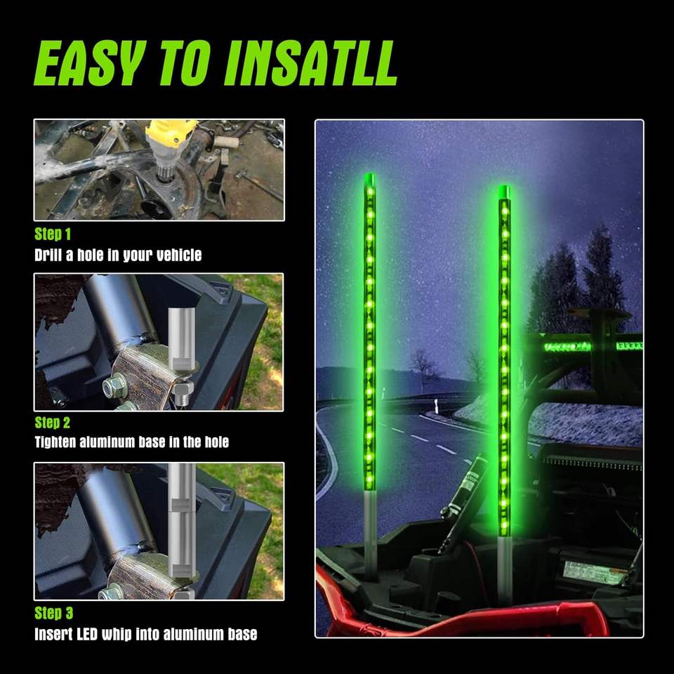 Nouvelle lampe LED fouet de 0,9 m (3 pi) en aluminium et PC pour camion, VTT, UTV, RZR, Polaris, tout-terrain, buggy des dunes, 4x4