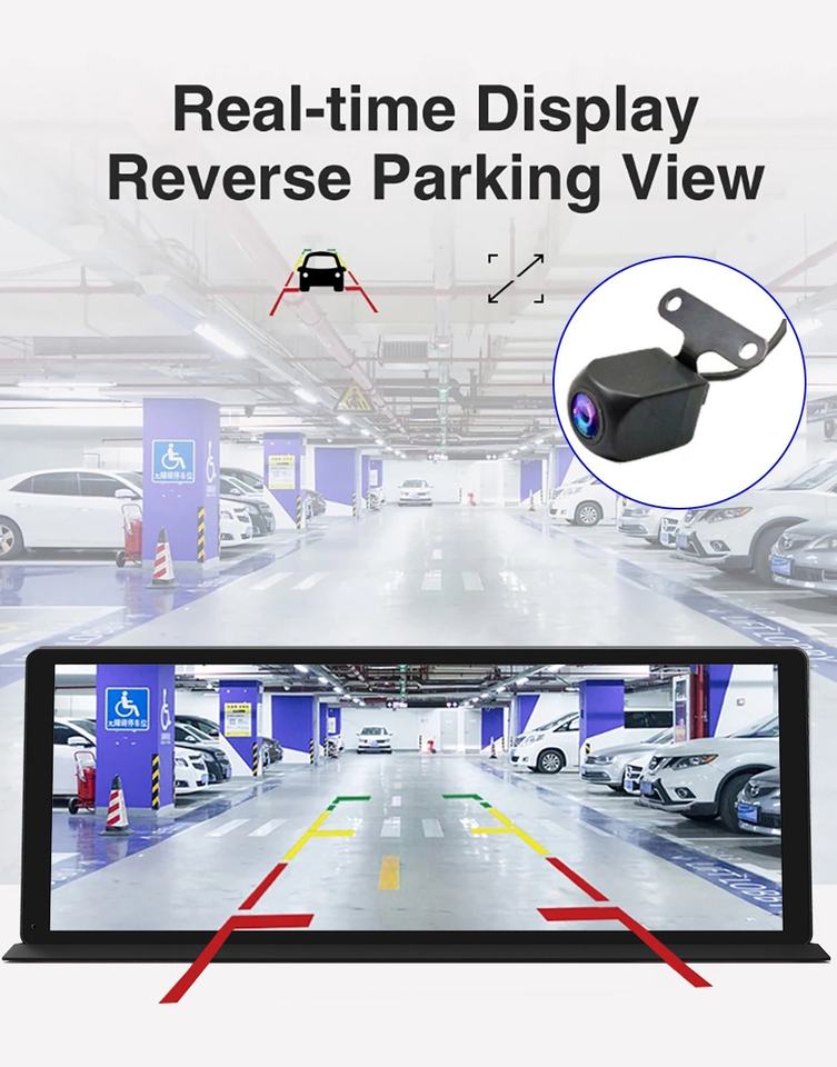 Nouvel écran tactile 11.3 "Carplay Android Auto Display avec caméras avant et arrière 5K + 1080P enregistrement en boucle WiFi et connexion par carte SD
