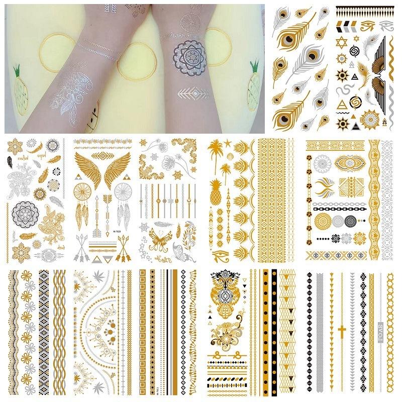 Autocollant métallique de tatouage d'or