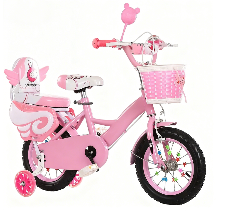 Nouveau vélo pour enfant de 12 pouces à une vitesse avec roues d'apprentissage, frein en V, fourche en acier, panier en plastique, pour filles de 3 à 6 ans