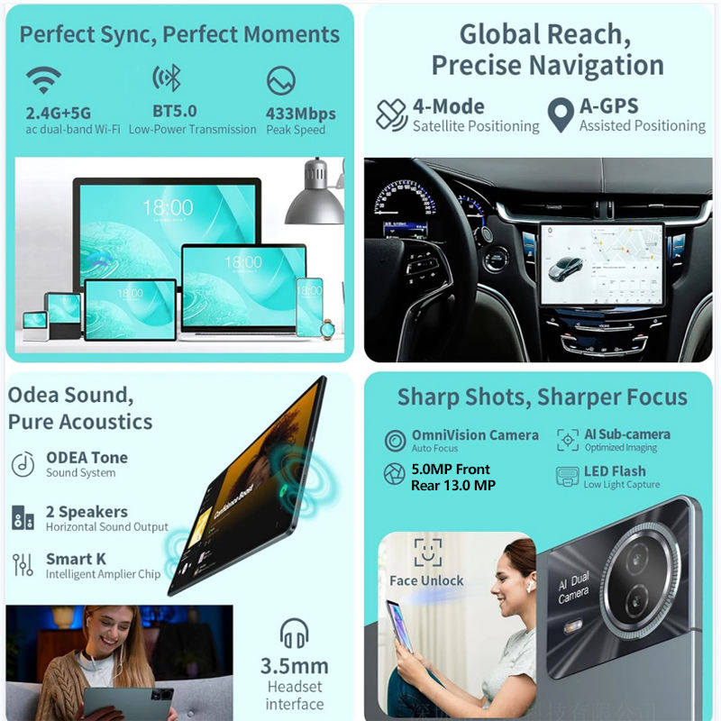 Nouvelle Tablette PC 14 Pouces Écran HD Android 14 128 Go Octa Core avec USB Type-C pour Usage Professionnel et Bureau Quotidien
