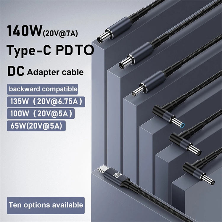 Nouveau 140W Type C PD à 5.5X2.5 7.4X5.0 4.5X3.0mm DC Power Adapter Converter USB C Fast Laptop Charger Cable pour Dell Hp Asus