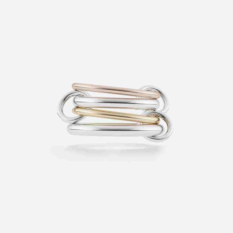 Nouveau 14k Or Massif Multi Lien Connecté Deux Tons Connecteur Anneau Emboîtement Lié Déclaration bijoux Anniversaire Cadeau Pour Elle