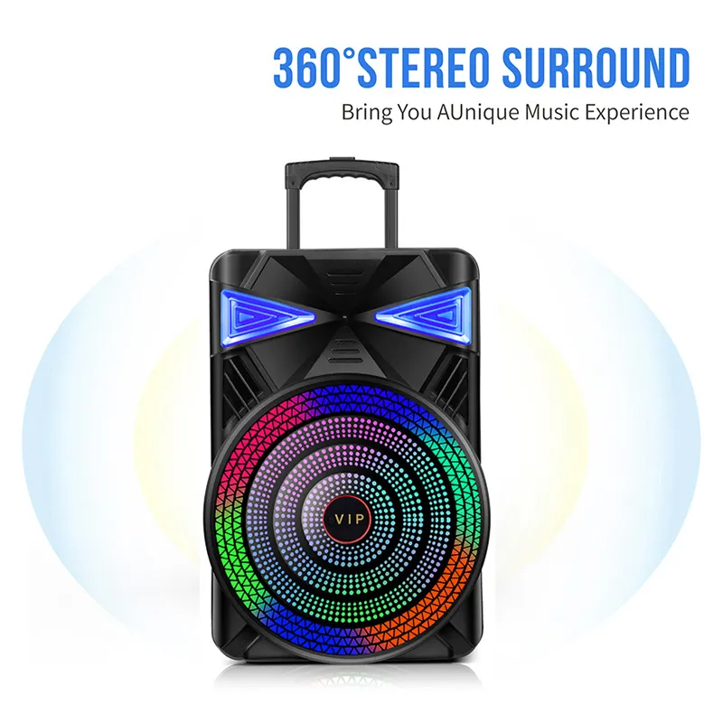 Nouveau 15 pouces Haut-parleur de basse extérieur Led Bt Stage Trolly Multimédia Haut-parleur Karaoké Haut-parleur Con Display Trolley Haut-parleur