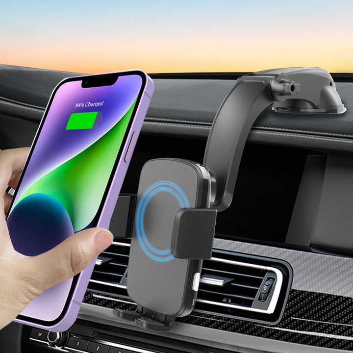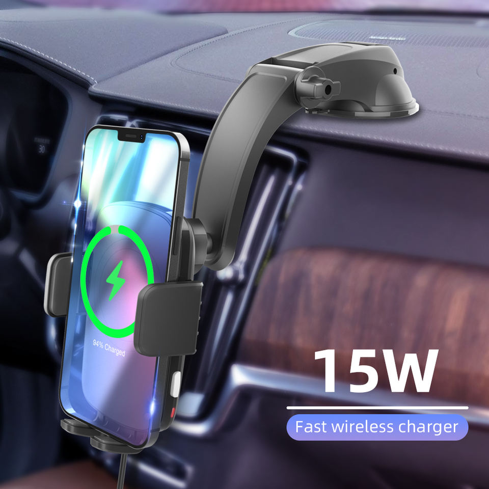 Nouvelle ventouse de charge rapide 15W support de téléphone portable de voiture Induction automatique support de téléphone de voiture chargeur sans fil