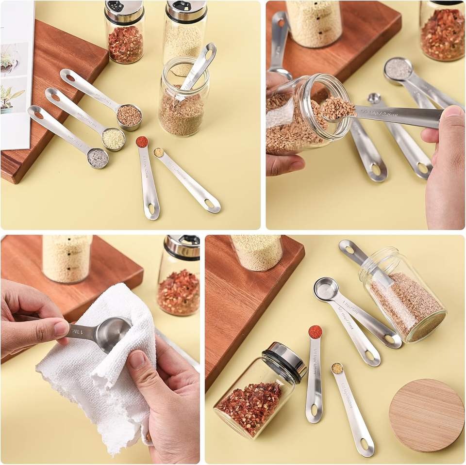 New 18/8 Stainless Steel Set of 6 Piece Measuring Spoons for Dry & Liquid