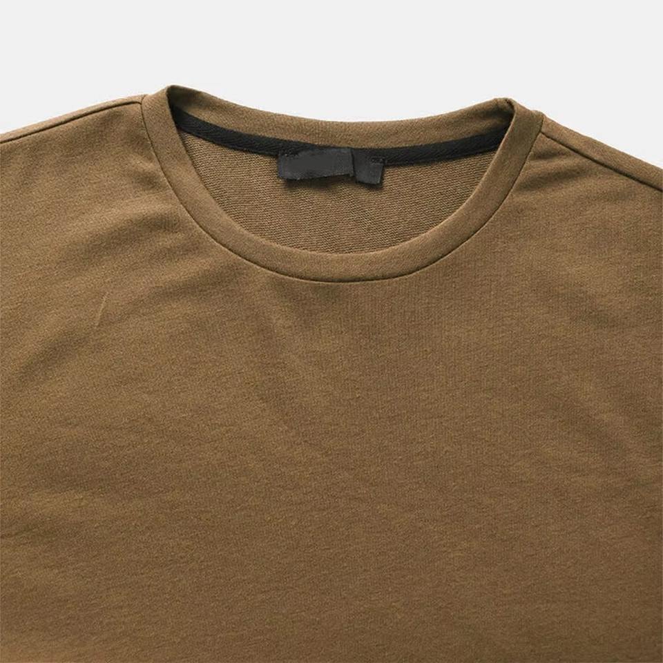 Nouveau T-shirt Homme 180 GSM Trois Couleurs en Coton Mélangé Multi-couches Uni Décontracté pour l'Été Marron Crème Vert