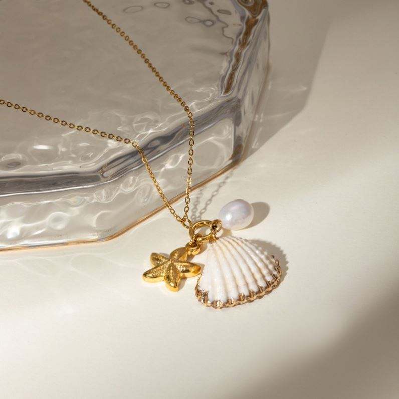 New 18K Gold Plated Necklaces Accessories Stainless Steel Popular Shell Pearl Necklace