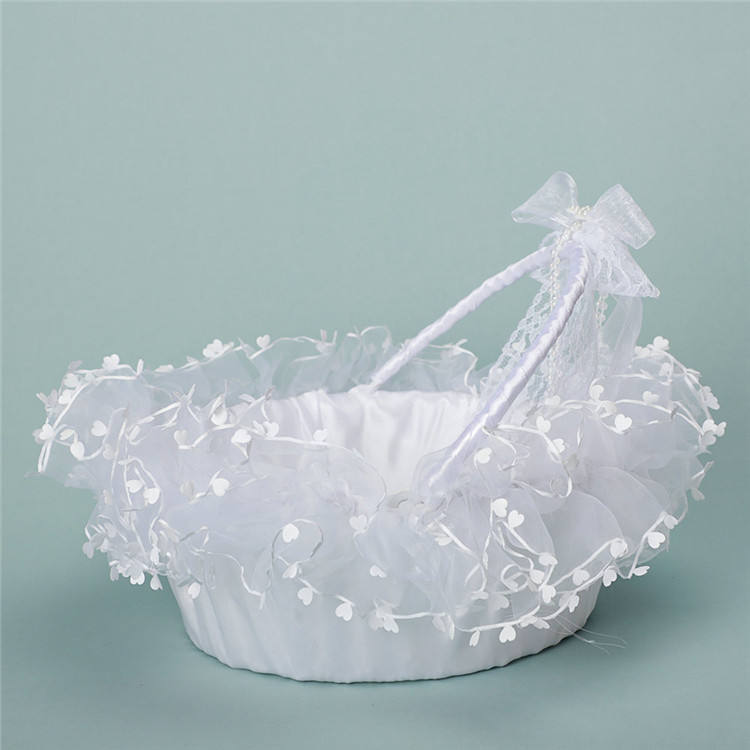 Nouveau panier de fleurs de mariage de poche blanc 1 pièce avec garniture en forme de coeur en dentelle et poignée réglable directement du fabricant