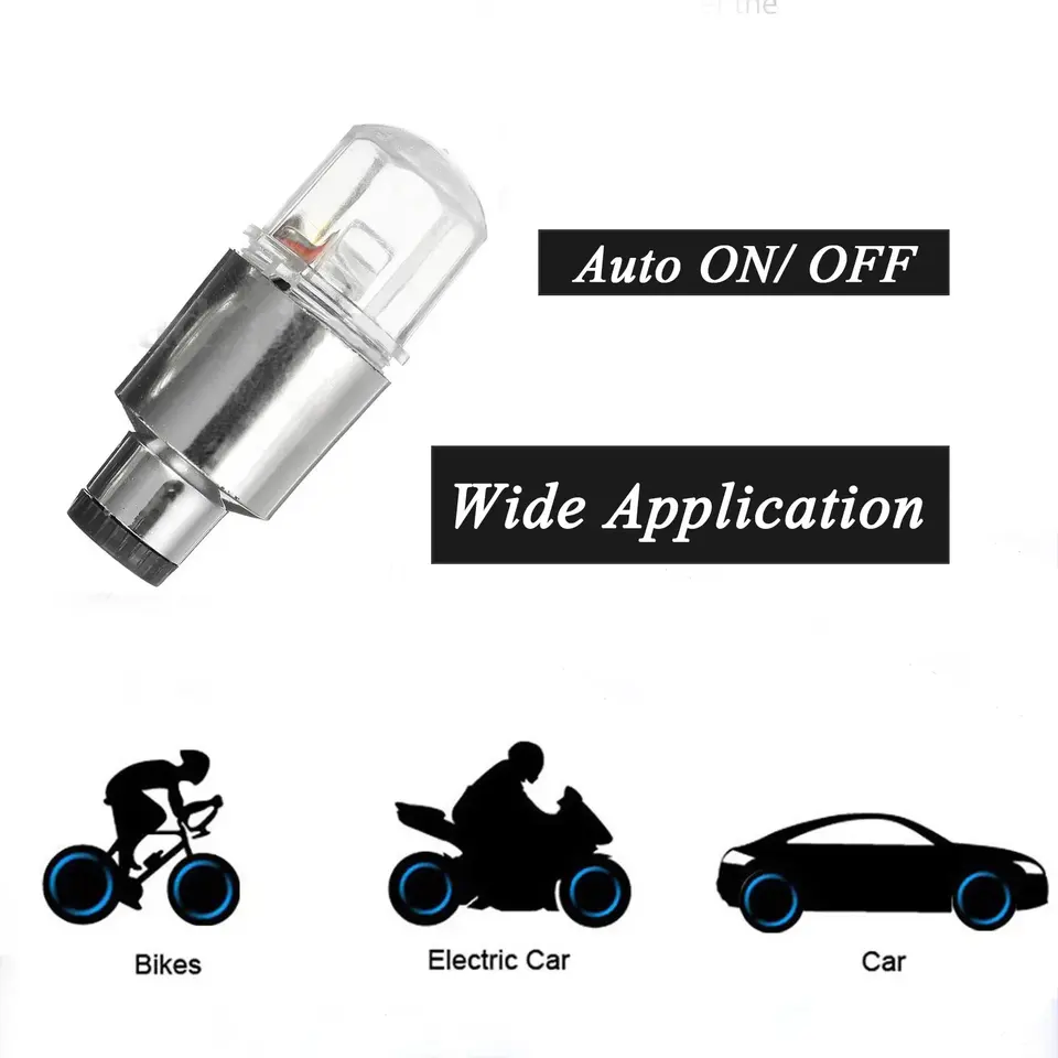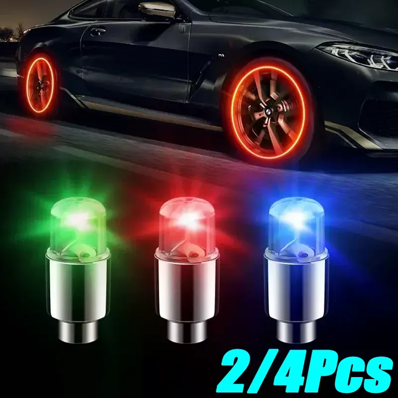 Nouvelles lumières LED universelles pour pneus de voiture et de vélo, 2/4 pièces, lampe néon, capuchon de valve, clignotant coloré, 12V