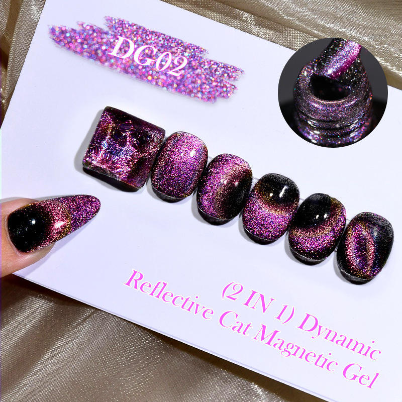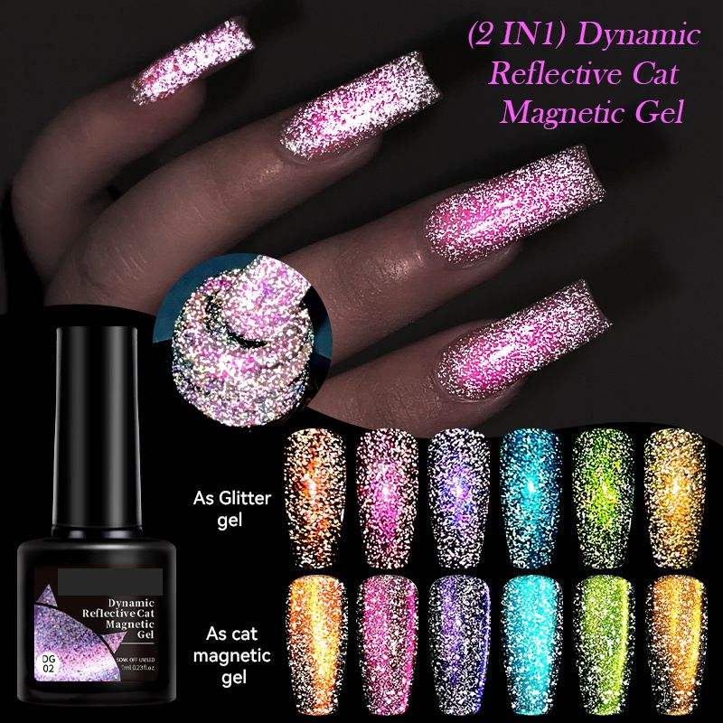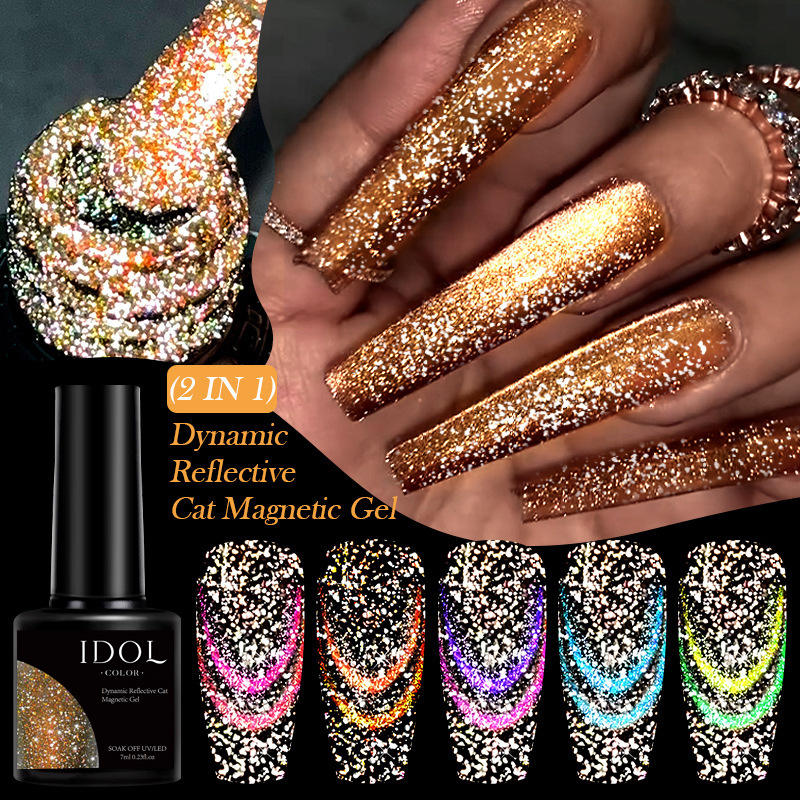 Nouveau vernis à ongles gel effet œil de chat 2 en 1, 7 ml, gel magnétique réfléchissant dynamique, poudre scintillante, peinture gel UV