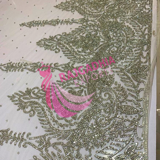 Tissu en dentelle perlée à la main, nouvelle collection 2022, broderie en pierres perlées, pour robe de mariée