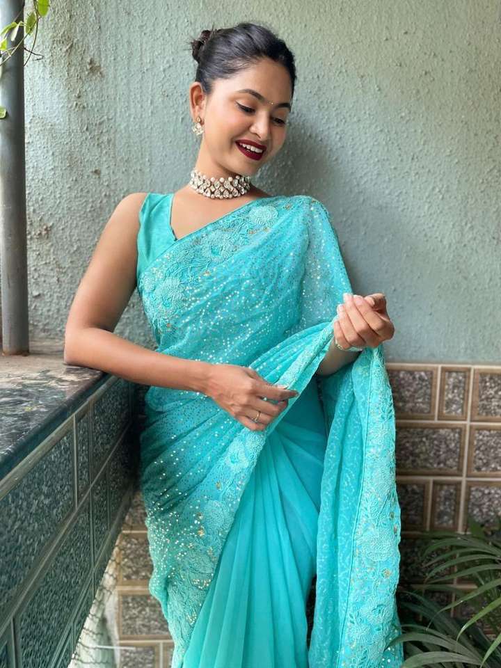 Nom du produit:Nouveau 2023 Georgette Séquence Tuyauterie Travail Saree Blouse