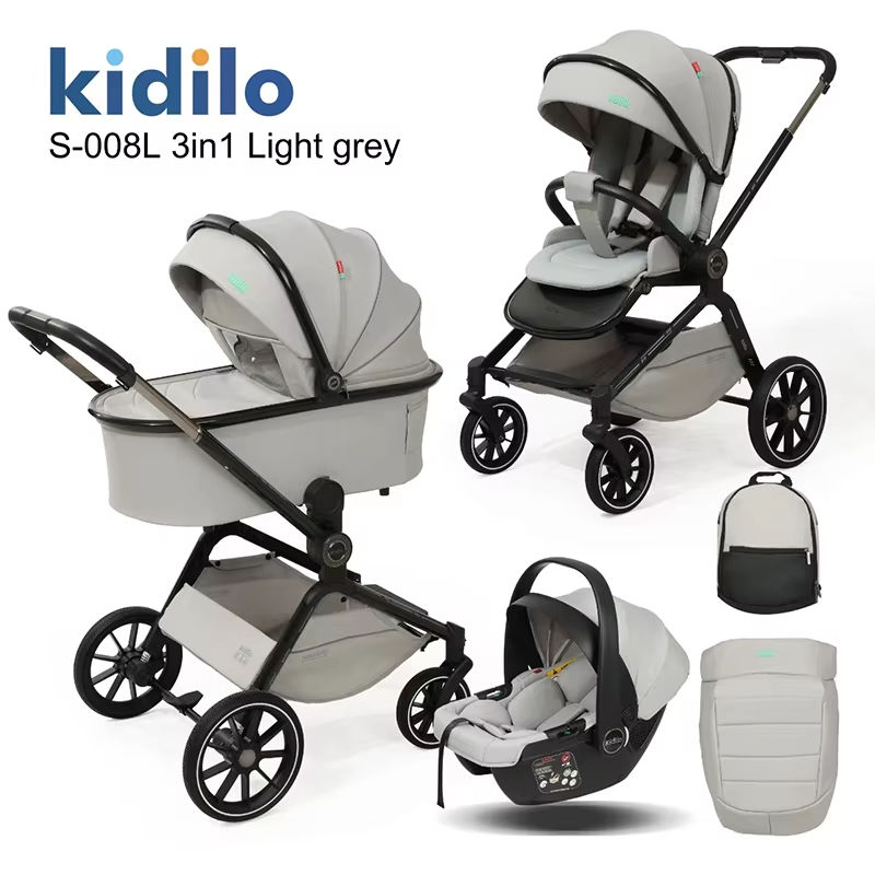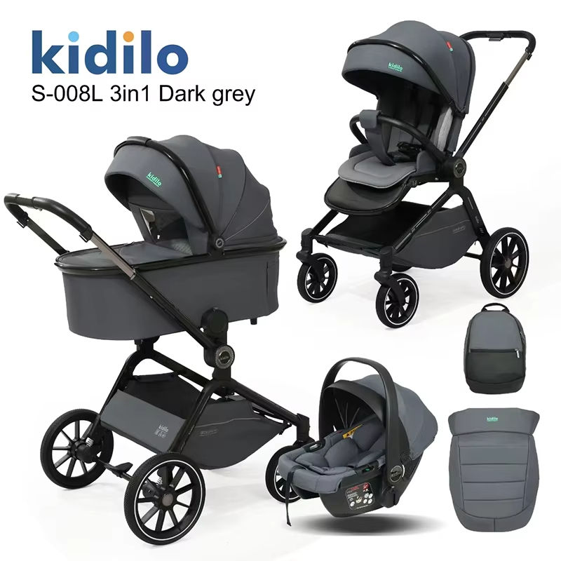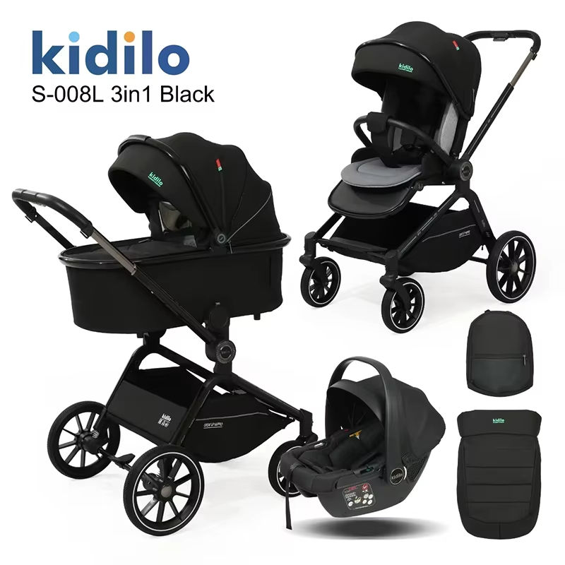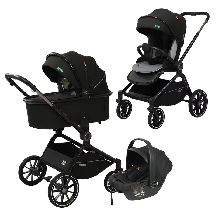 Nouveau Poussette Bébé Multifonctionnelle 3 en 1 Kidilo 2025 avec Siège Auto, Ensemble Poussette Bébé Pliable Noir pour 0-3 Ans