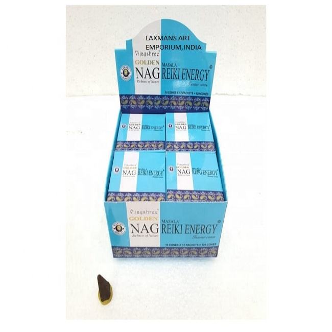 Nouveau 2025 populaire Golden Brand Reiki Energy parfumé cônes d'encens roulés à la main Pack vente en gros de l'Inde Vijaysree exportation d'encens