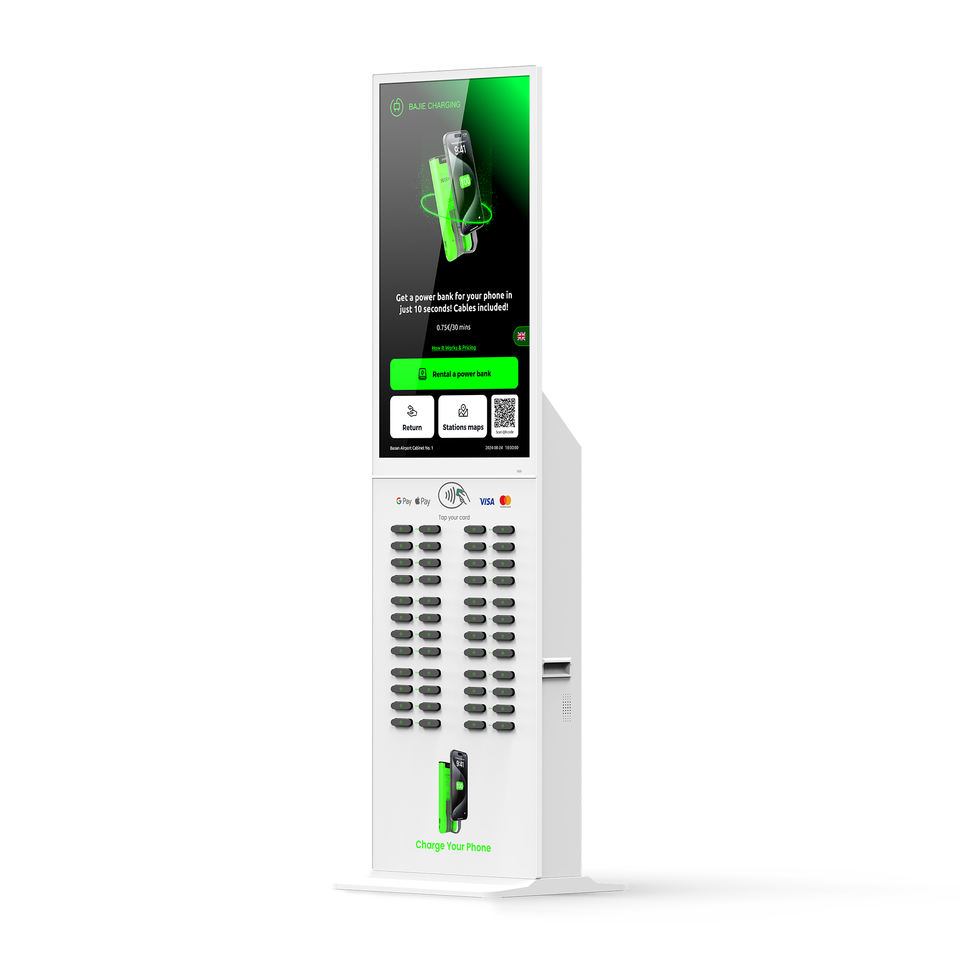 Nouveaux produits 2025, station de location de batteries externes, 48 emplacements, écran publicitaire, lecteur de carte POS, exclusif pour la location en extérieur