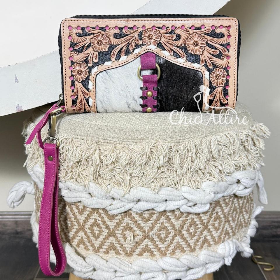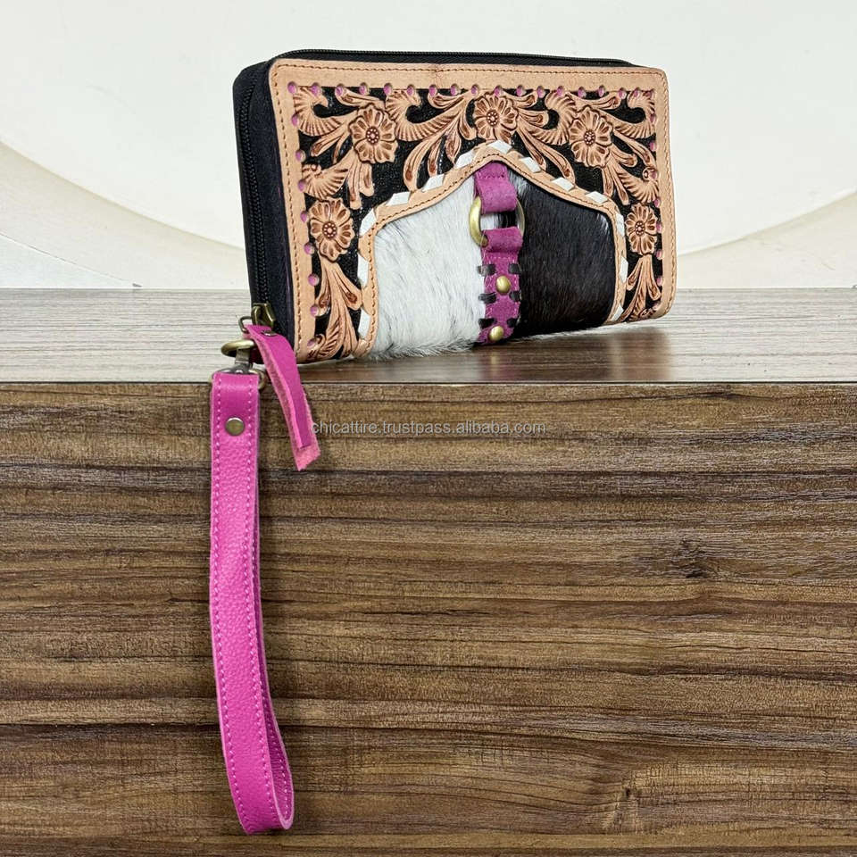 Portefeuille bracelet en cuir de vachette travaillé à la main