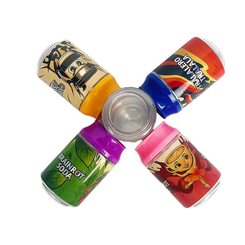 Nouveaux pots en plastique de 3,5 g au design de canette de soda, emballage de 100 ml avec bouchon coloré, pour bonbons gélifiés, herbes sèches, fleurs, canettes de soda en plastique de 3,5 g
