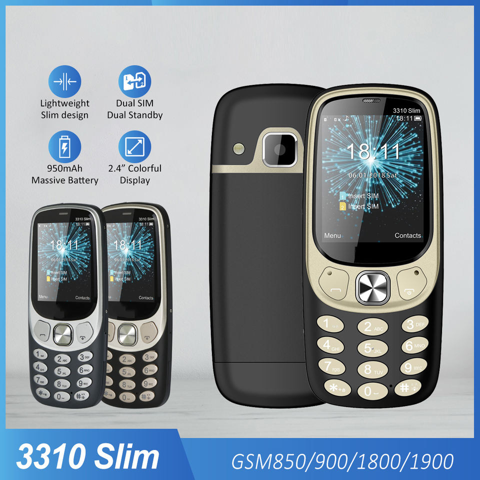 Nouveau téléphone portable fin 3310, écran 2,4 pouces, double SIM, double veille, batterie 950 mAh, téléphone à grosses touches, GSM 850 900 1800 1900