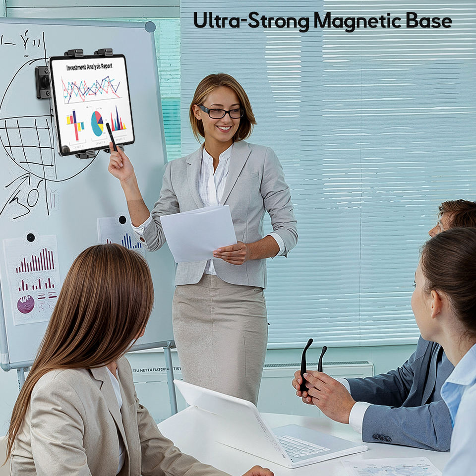 Nouveau 360 ° Support mural magnétique rotatif pour tablette iPad avec 2 plaques métalliques, compatible avec les murs, les bateaux et les armoires