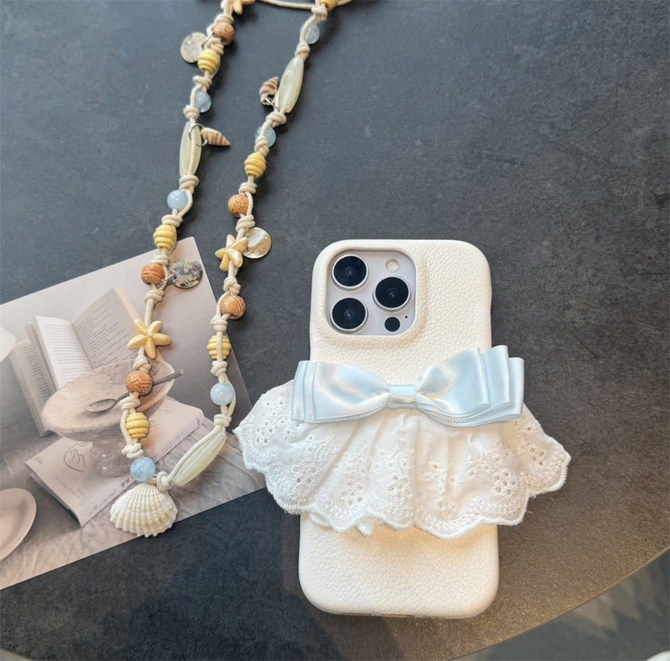 Nouveau 3D bricolage dentelle nœud papillon litchi PU motif en cuir mignon étui de téléphone pour iPhone 16 15 Pro Max housses de protection mobiles pour les filles