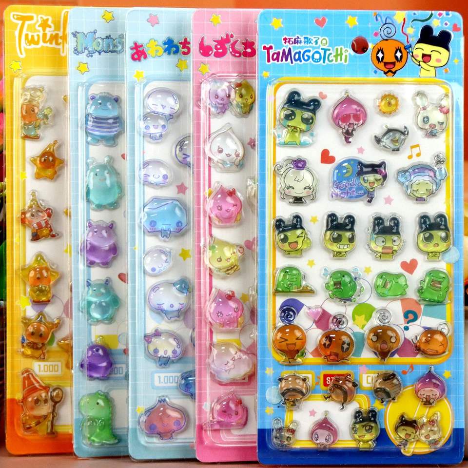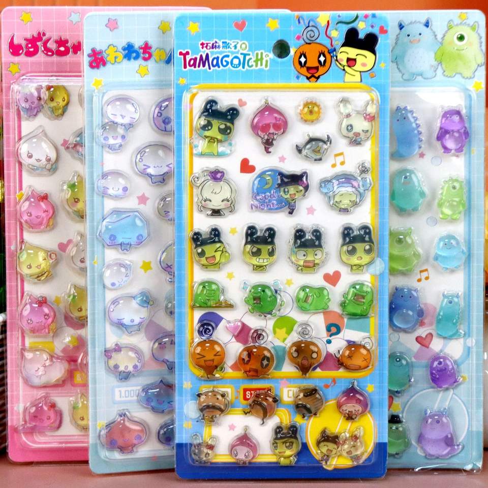 Nouveaux autocollants en relief en époxy cristal solide japonais 3D stéréo, 8 types, dessins animés pour enfants, Tamagotchis, autocollants vintage en forme de goutte d'eau