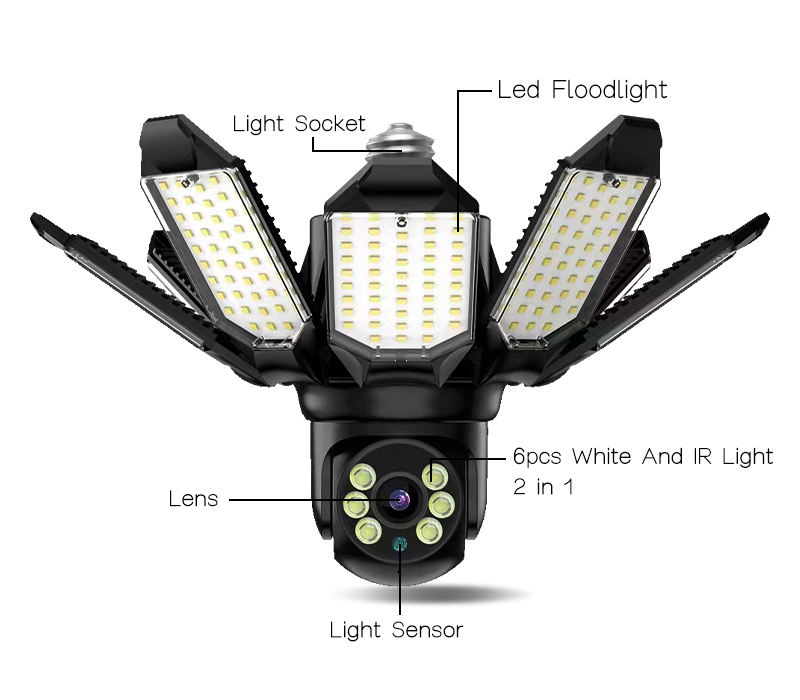 Nouvelle caméra de sécurité intelligente avec projecteur LED 3MP, caméra PTZ 360°, caméra ampoule, détection de mouvement par IA, vision nocturne couleur, audio bidirectionnel, caméra Wifi
