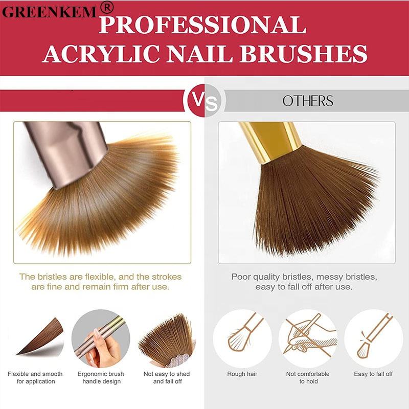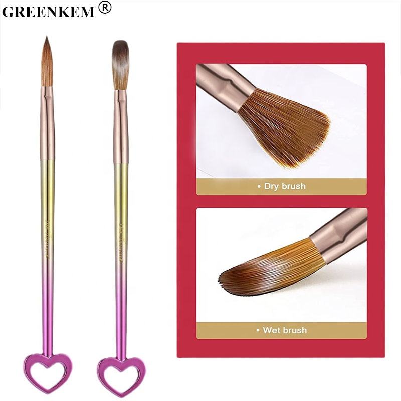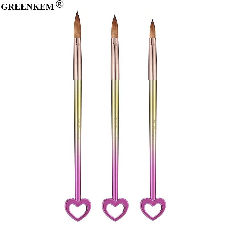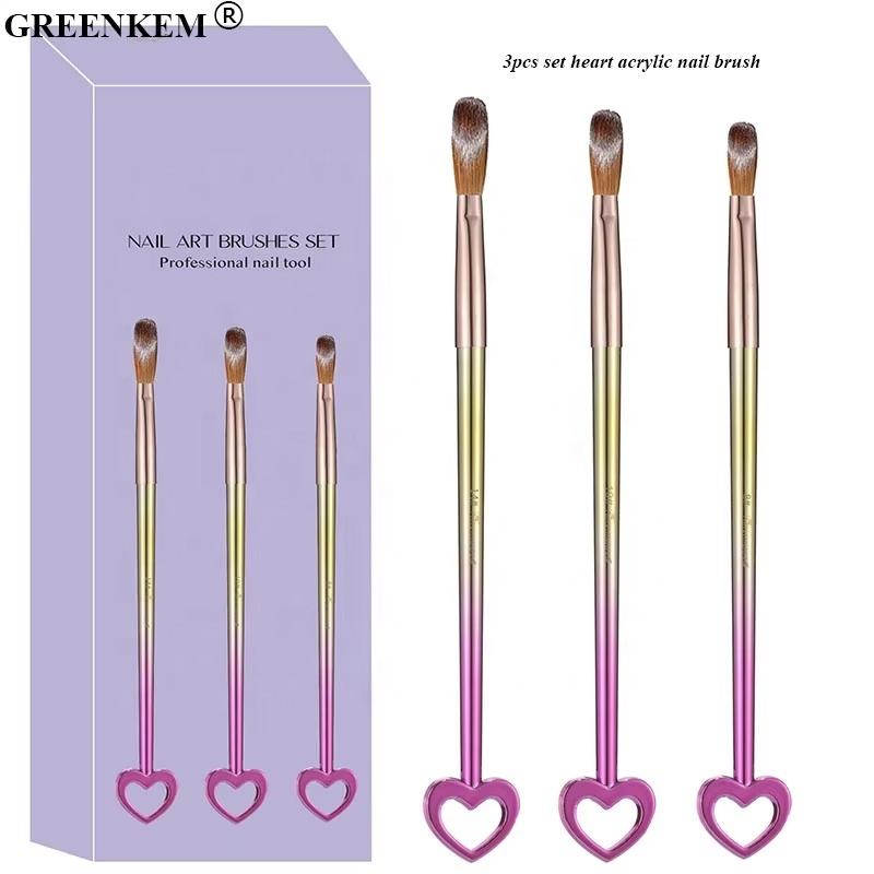 Pinceau à ongles acrylique en forme de cœur rose 16 18 22mm, ensemble de 3 pièces, vernis à ongles, peinture, dessin, support métallique