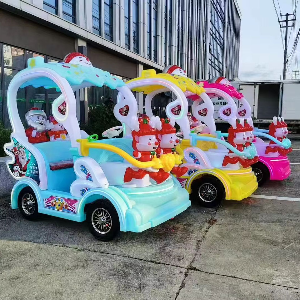 Nouvelle voiture jouet à thème Père Noël pour 4 personnes, jouet de parc d'attractions intérieur de Noël avec pneus tout-terrain, tension 48v