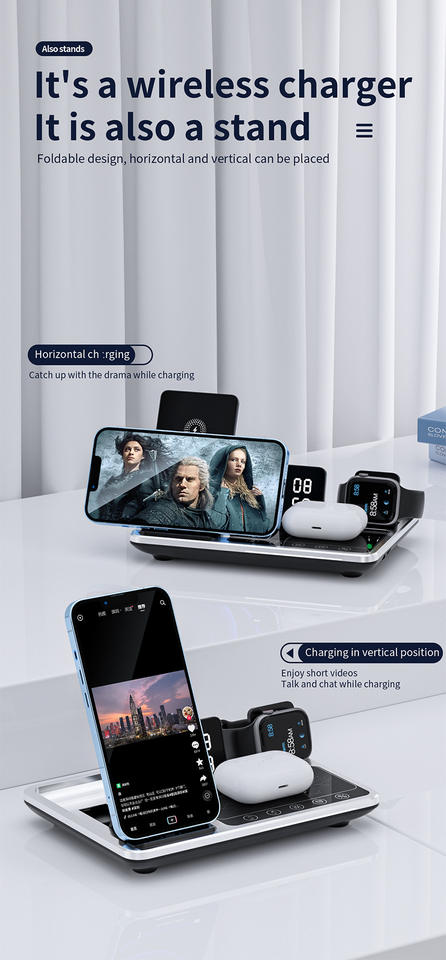 Chargeur sans fil, Adaptateur universel, Chargeur de bureau, Fast charger, 4 in 1 Wireless Charging StationType