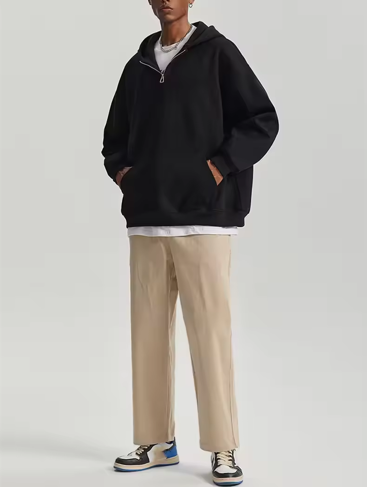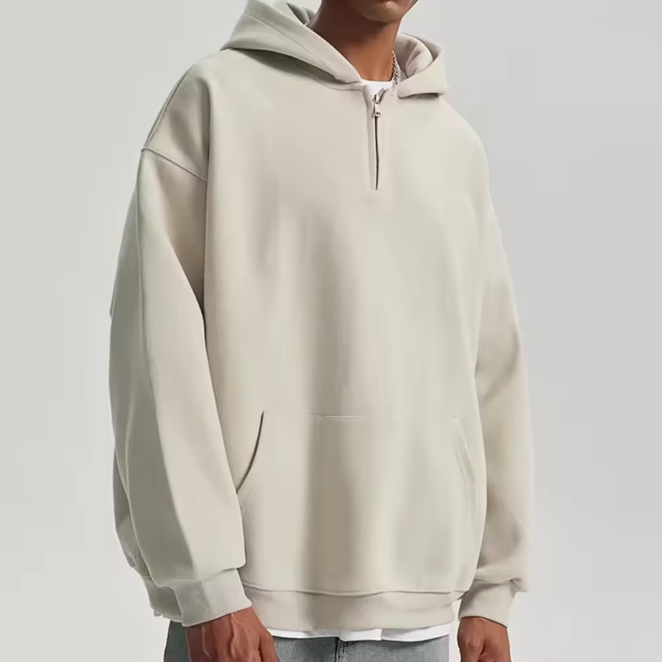 New 400 500 600gsm Heavyweight Cotton French Terry Men half zip oversized cropped quarter zip hoodies