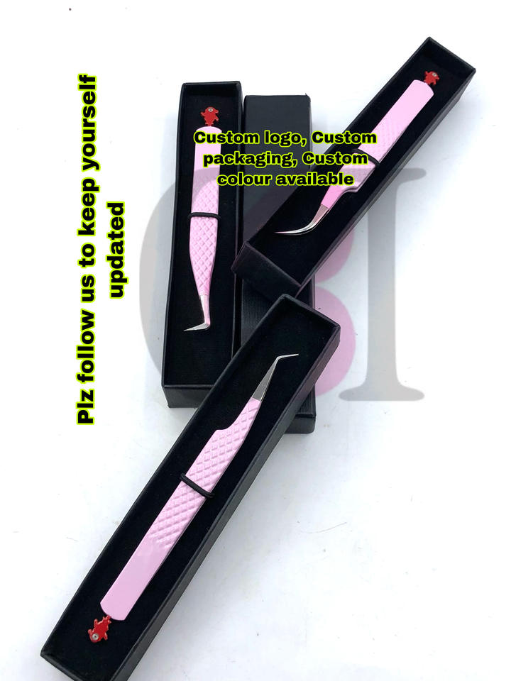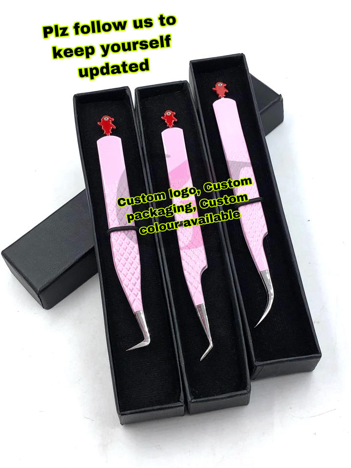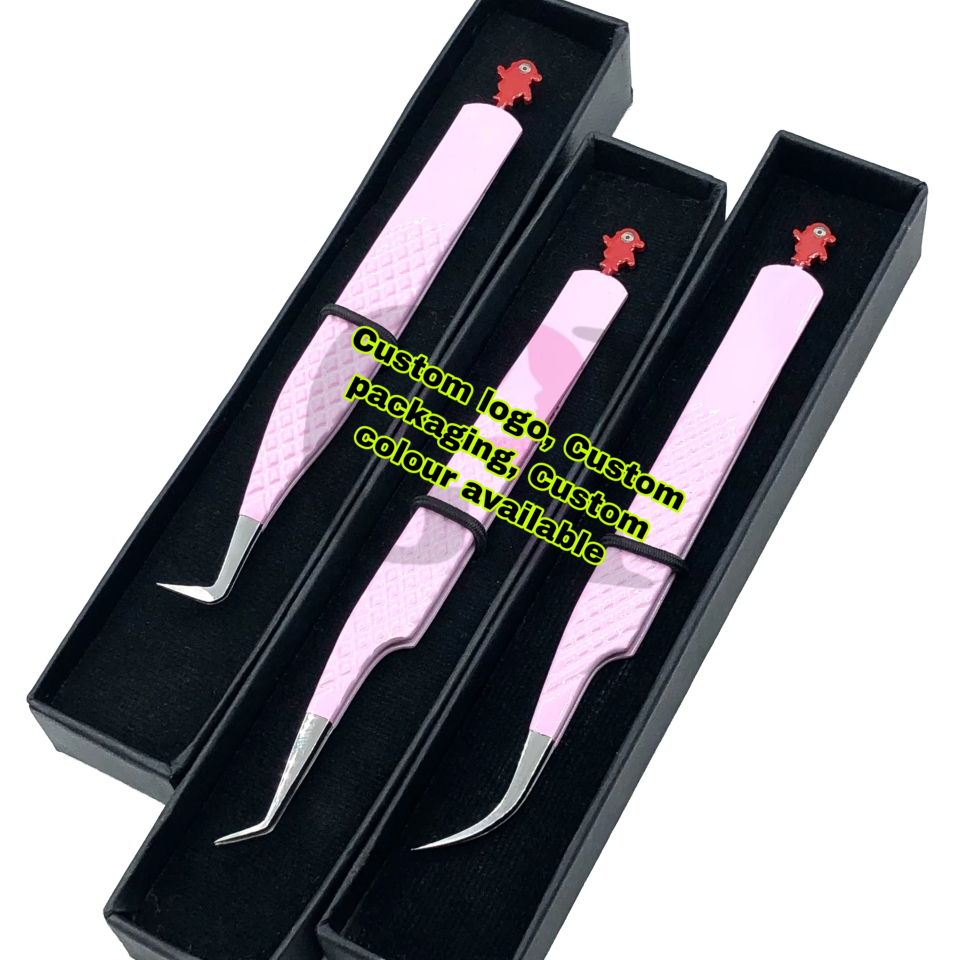 Nouveau revêtement en poudre de couleur rose à 45 degrés avec poupée de côté arrière pince à épiler d'extension de cils à 90 degrés courbe outil de beauté en acier inoxydable