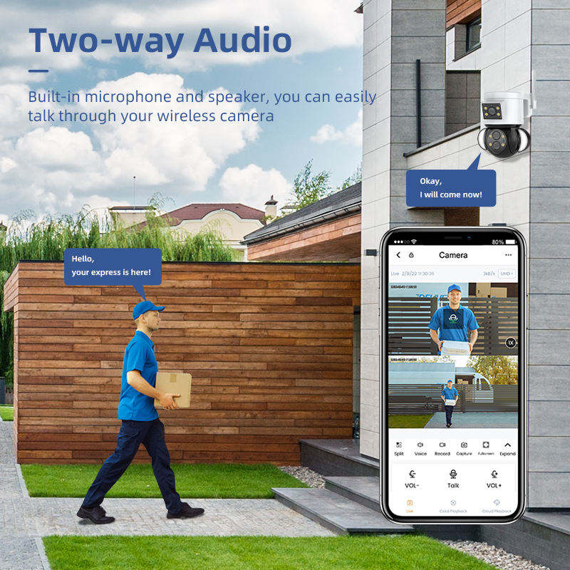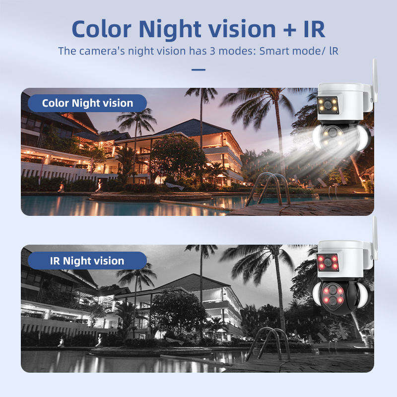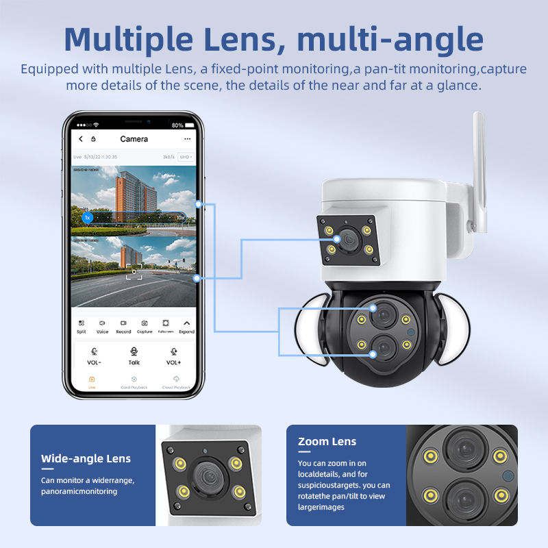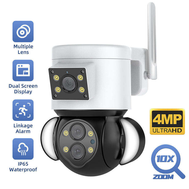 Nouvelle caméra IP CCTV à double capteur 4MP, caméra de sécurité PTZ étanche pour extérieur, avec surveillance WIFI, éclairage de rue