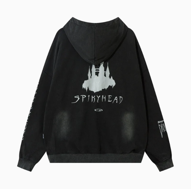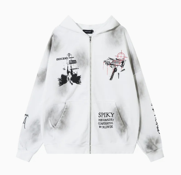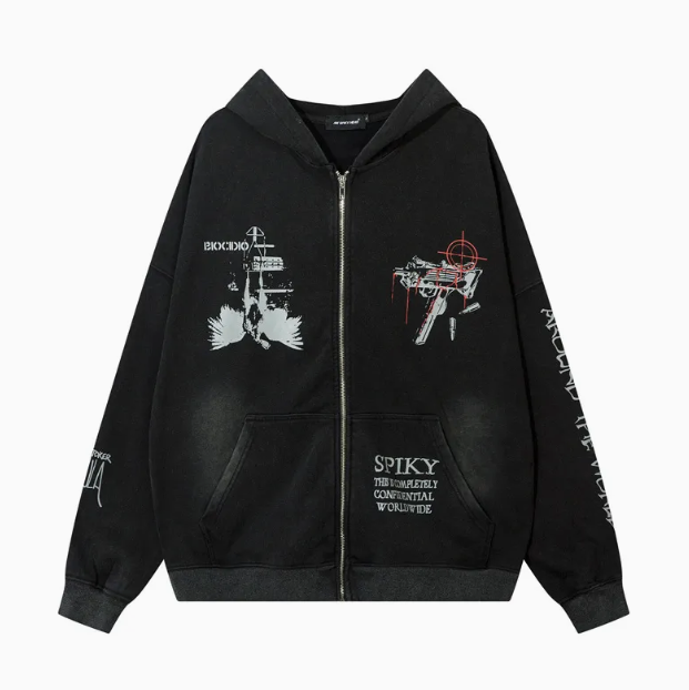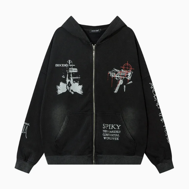 New 500GSM Custom Streetwear Fleece 100% Cotton Rhinestone Sun Faded Acid Wash Distressed Patch Embroidery Regular Zip Winter
