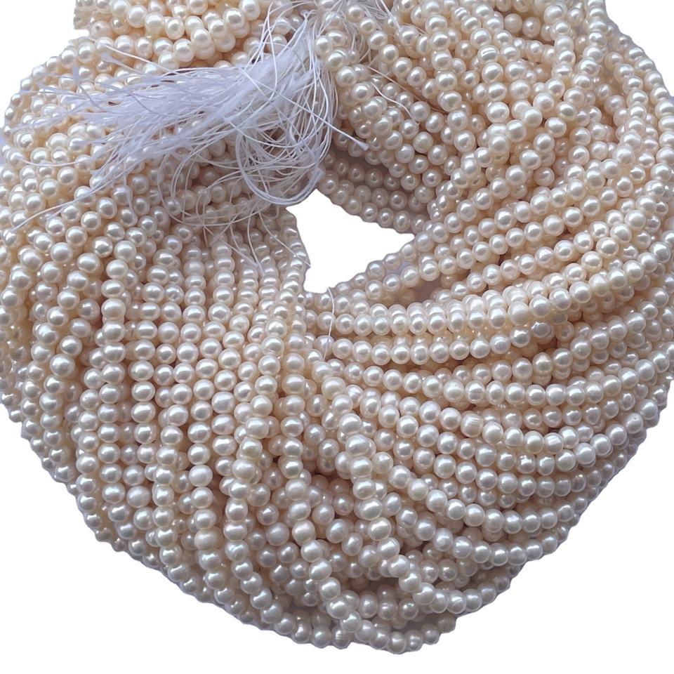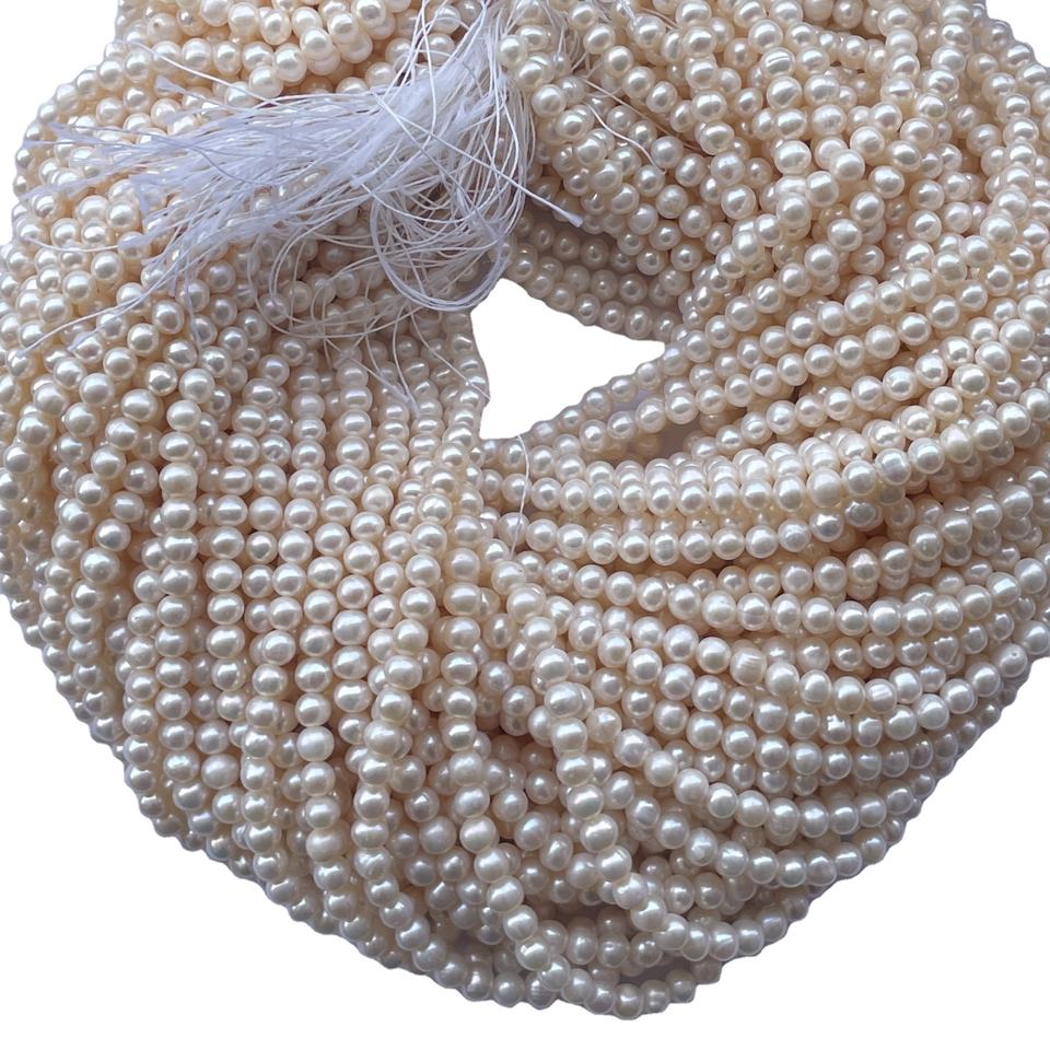 Nom du produit:5mm 6mm naturel blanc couleur perle d'eau douce Pierre perles de pommes de terre rondes